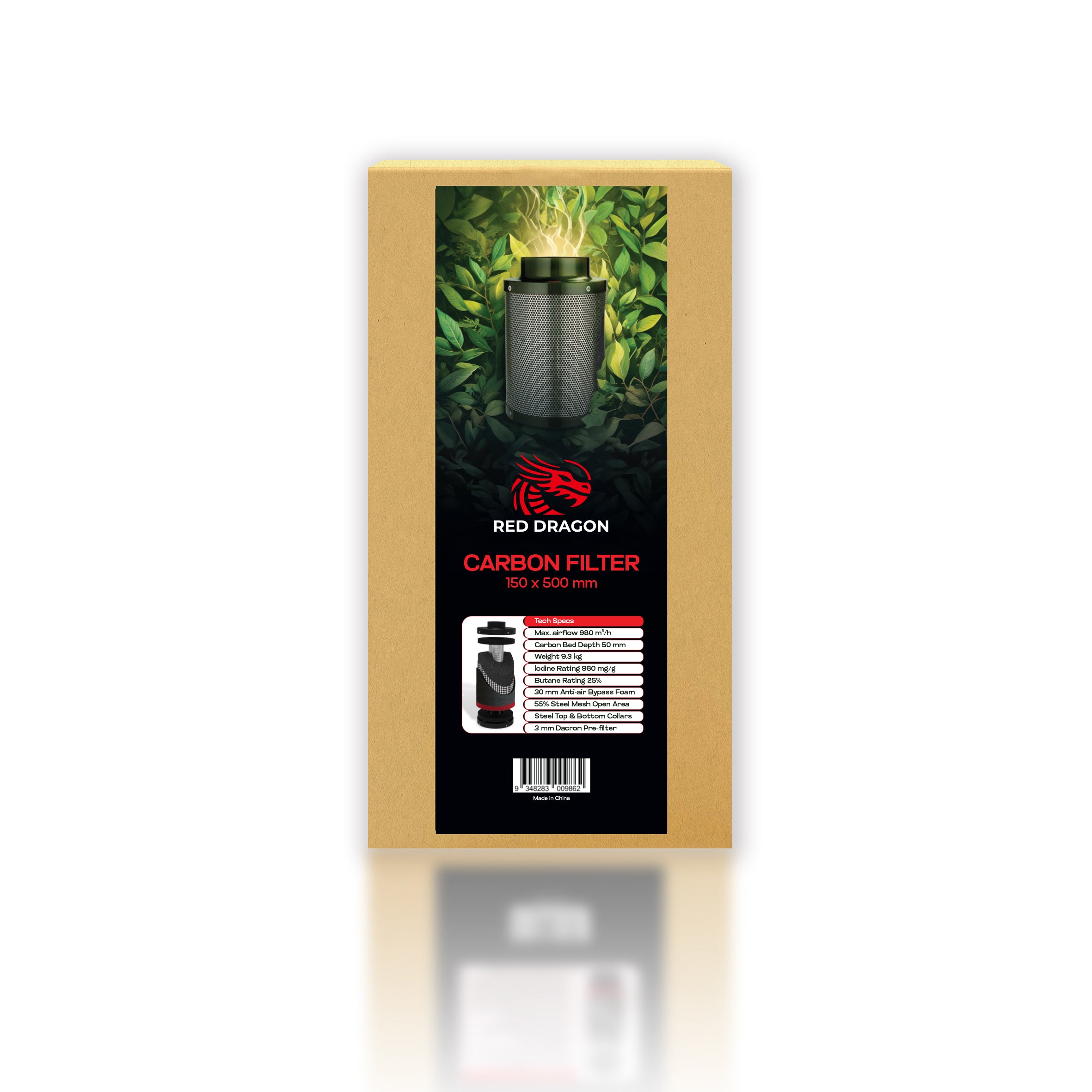 The Pro Grow Dragon Series 150 x 500mm Carbon Filter is designed for larger grow tents and mid-sized indoor cultivation spaces that require enhanced airflow and odour neutralisation. With a maximum airflow rating of 980 m³/h, this filter can handle more demanding environments while maintaining outstanding VOC and odour control performance.