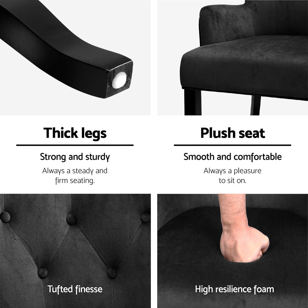 The tufted button design of the back rest, and the iconic curved back legs and turned front legs all add to the overall charisma of this classic chair.