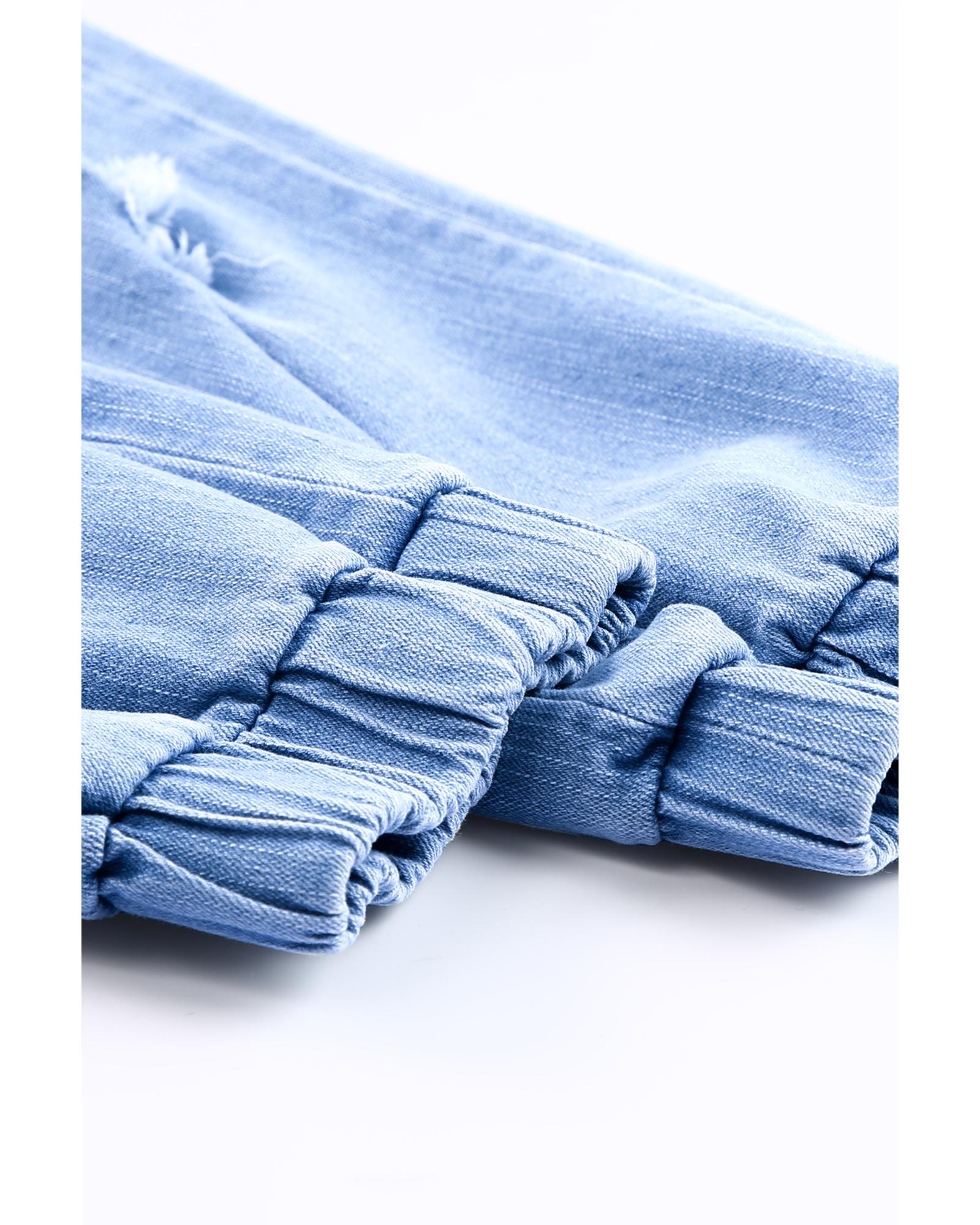 Pocketed distressed denim joggers