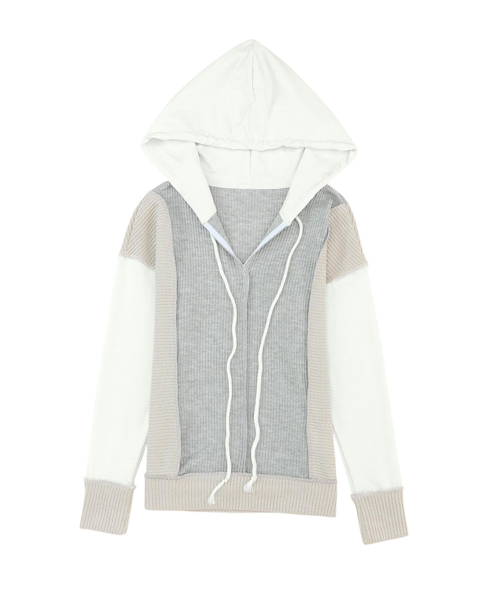 Stylish and cozy Long Sleeve Textured Knit Patchwork Hoodie