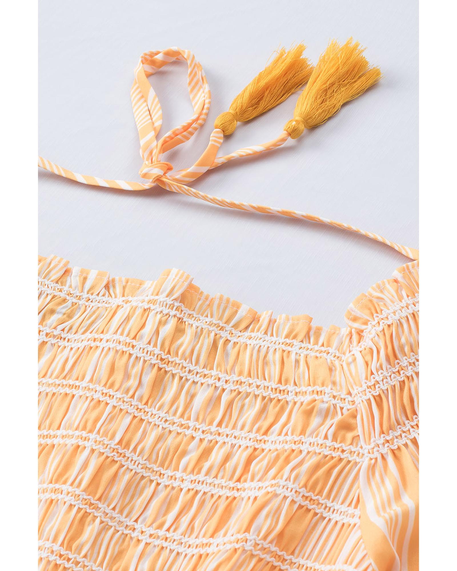 Stylish and versatile Striped Print Smocked Flowy Blouse