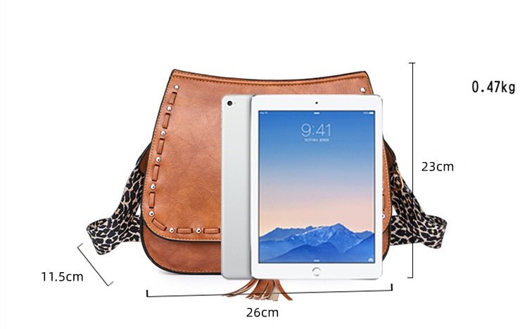 Gypsy Styled Fringed Rivet Shell Messenger Bag
