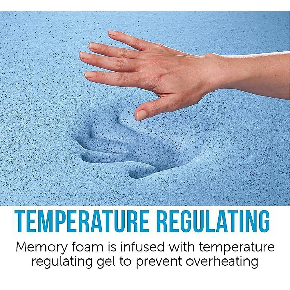 • Gel infused memory foam regulates temperature while conforming to the body to ease pressure points