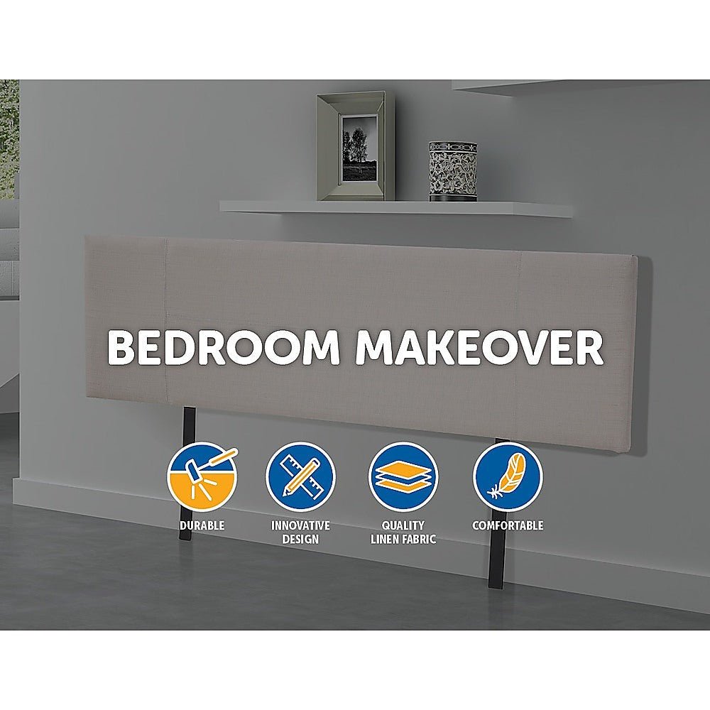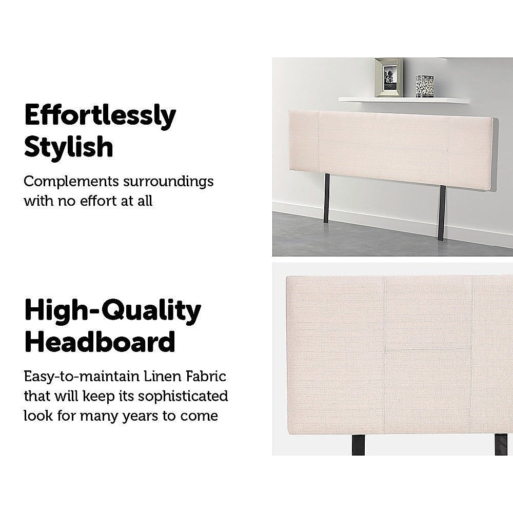 This headboard for standard King-sized bed frames is created with quality materials, including easy-to-maintain Linen Fabric that will maintain its sophisticated look for many years to come. This particular model comes with elegant stitching accents that provide just the right level of understated pop. A neutral beige will blend seamlessly with a wide variety of bed frames and other bedroom furniture.