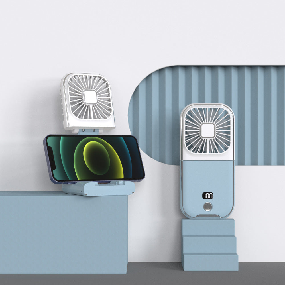 2-in-1 Design: Handheld fan and phone stand all in one.