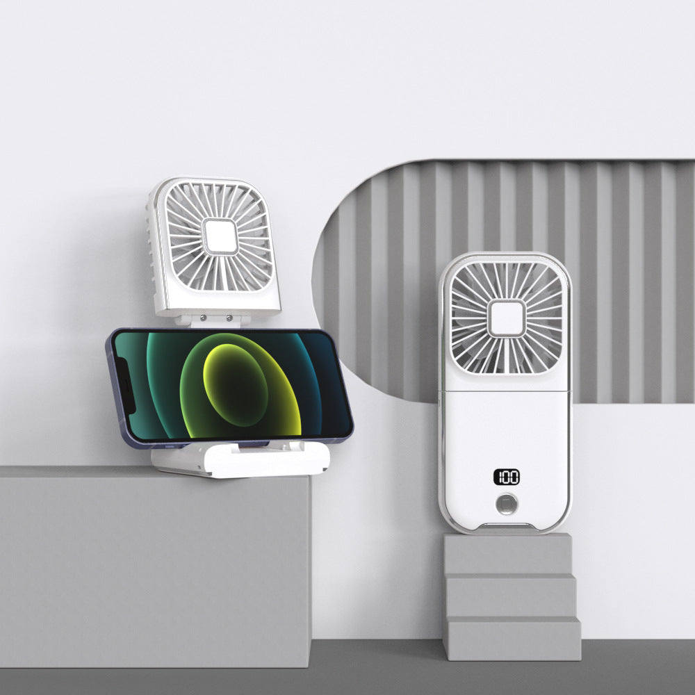 2-in-1 Design: Handheld fan and phone stand all in one.