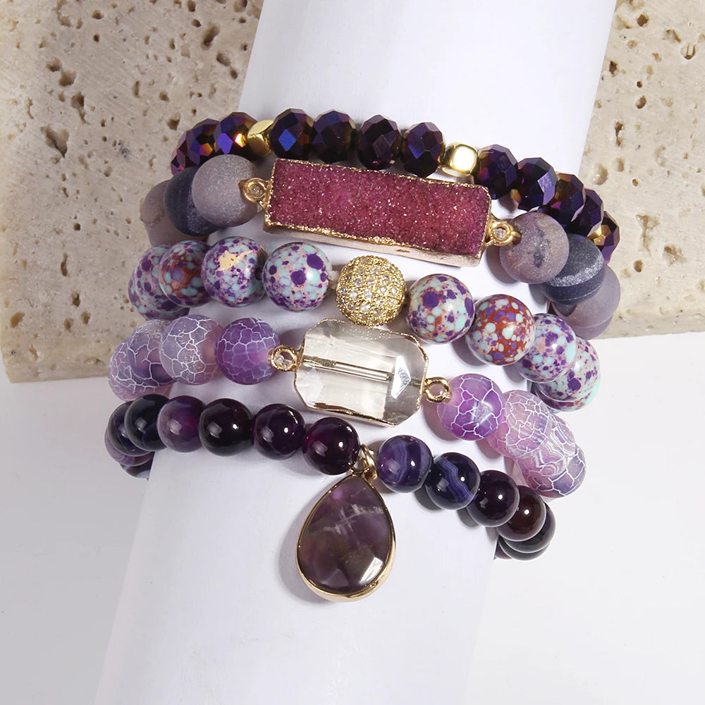 Immerse yourself in the cosmic dance with this wide hippie bracelet, meticulously handmade in the enchanting shades of purple. Adorned with a captivating druzy drop charm, it mirrors the mystical allure of twilight skies and dreamy realms. Wrap it around your wrist and let its celestial energy awaken your inner explorer, encouraging you to embrace the unknown and surrender to the flow of the universe.