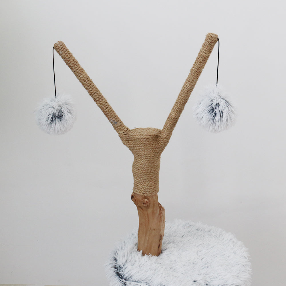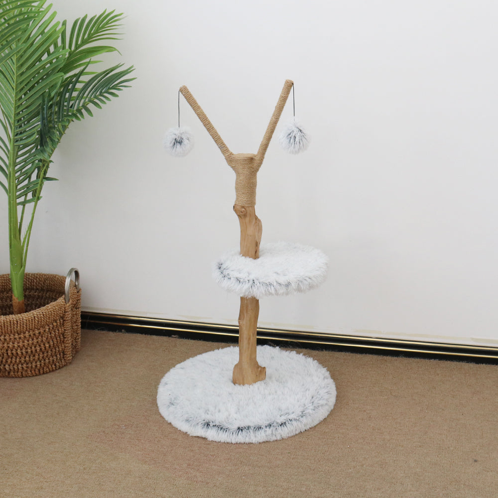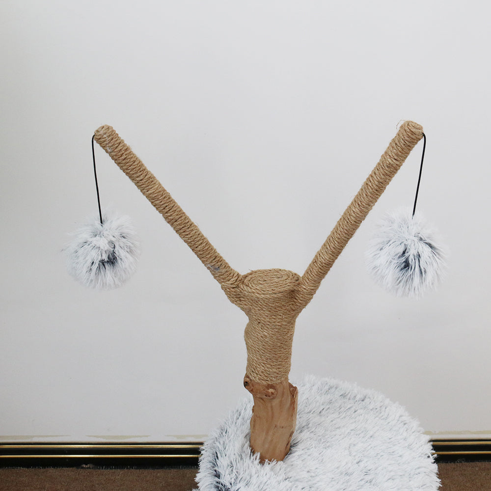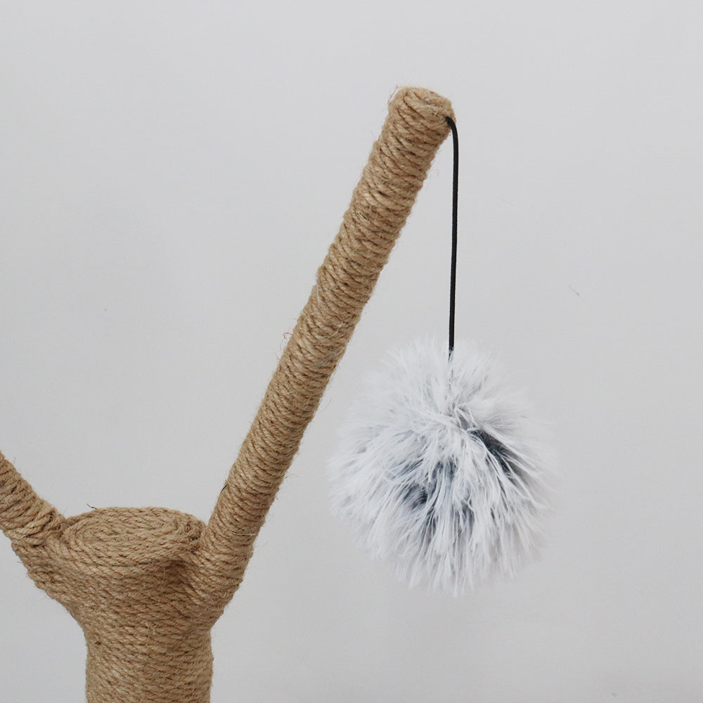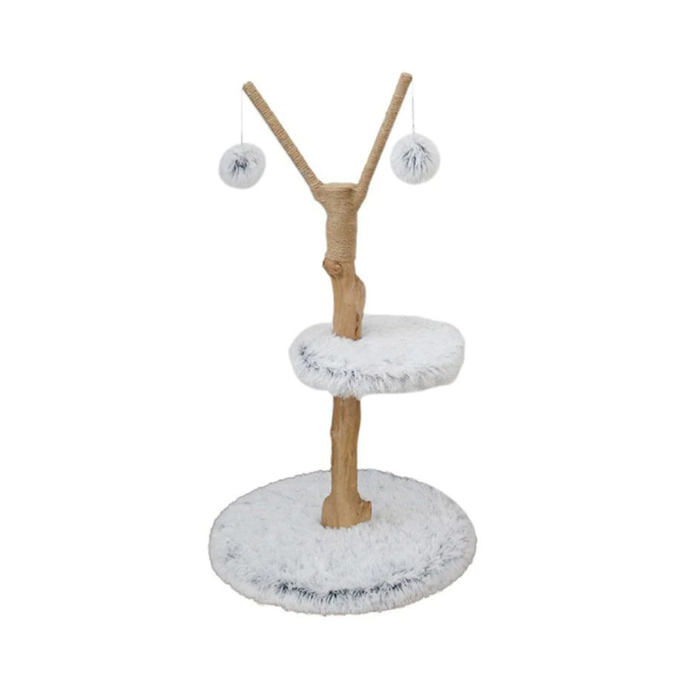 Catio Pure Single Level Cat Resort is a scratcher and cat bed combined into one. Made to look like a personal cat's resort, it has a plush resting platform you can have on any floor of your home, with two scratching posts made from high quality jute twine and a hanging toy with a fluffy ball for additional playtime fun. Let your cat explore their new cat furniture or new hang out spot.