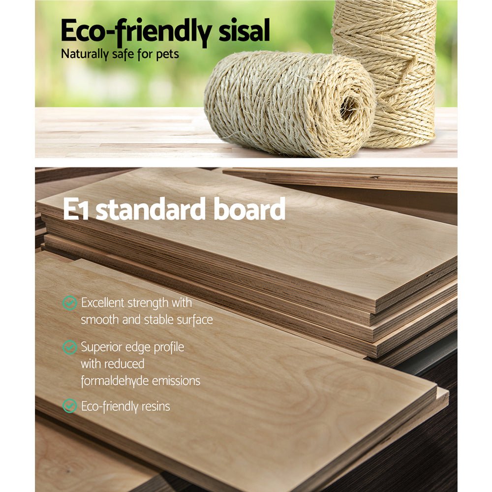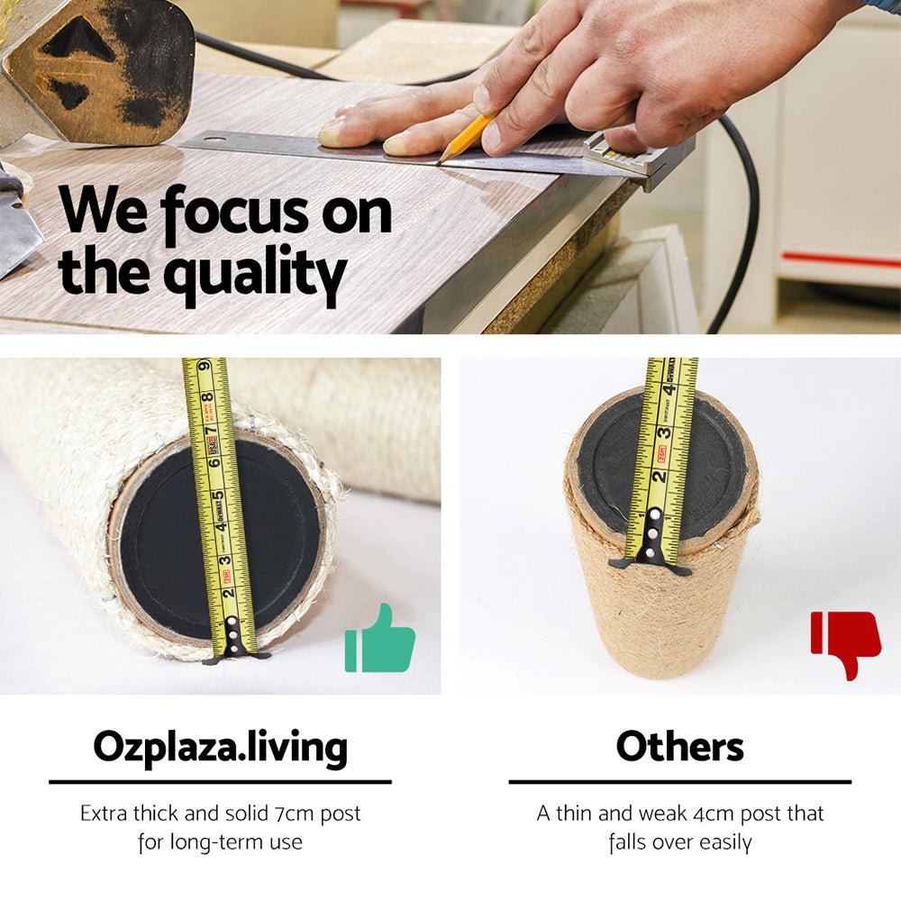 It is absolutely feline wonderland with our cat tree! Built to satisfy the natural instincts of your precious pet, our Cat Tree include a hosts of nooks and crannies for Tom and Tabby to have hours of fun scratching, hunting, climbing, jumping, hopping or simply lounging around. Better still, thw hanging mice also help to keep your cat curious and alert at all times. Plus, with its sisal-covered scratching posts, you can rest assured that your furniture will stay cat-free for a very long time. Not least, the tree is upholstered with a plush velvety surface for extra comfort and style. Best of all, the firm base and sturdy construction ensures that the tree remain a durable cat haven with total peace of mind for you. Can we hear a meow to that?