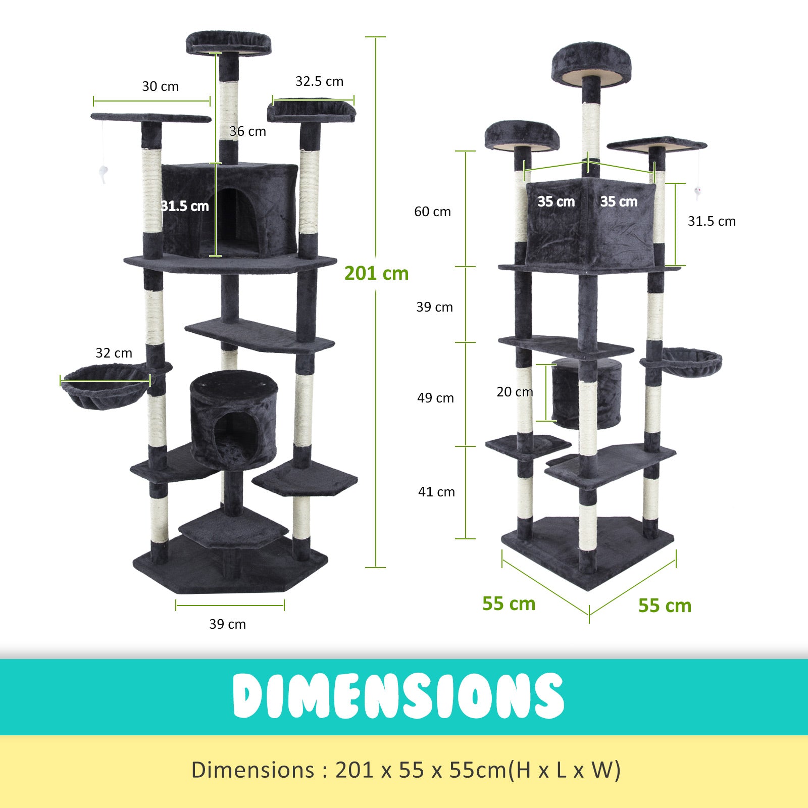 • 201cm high cat tree