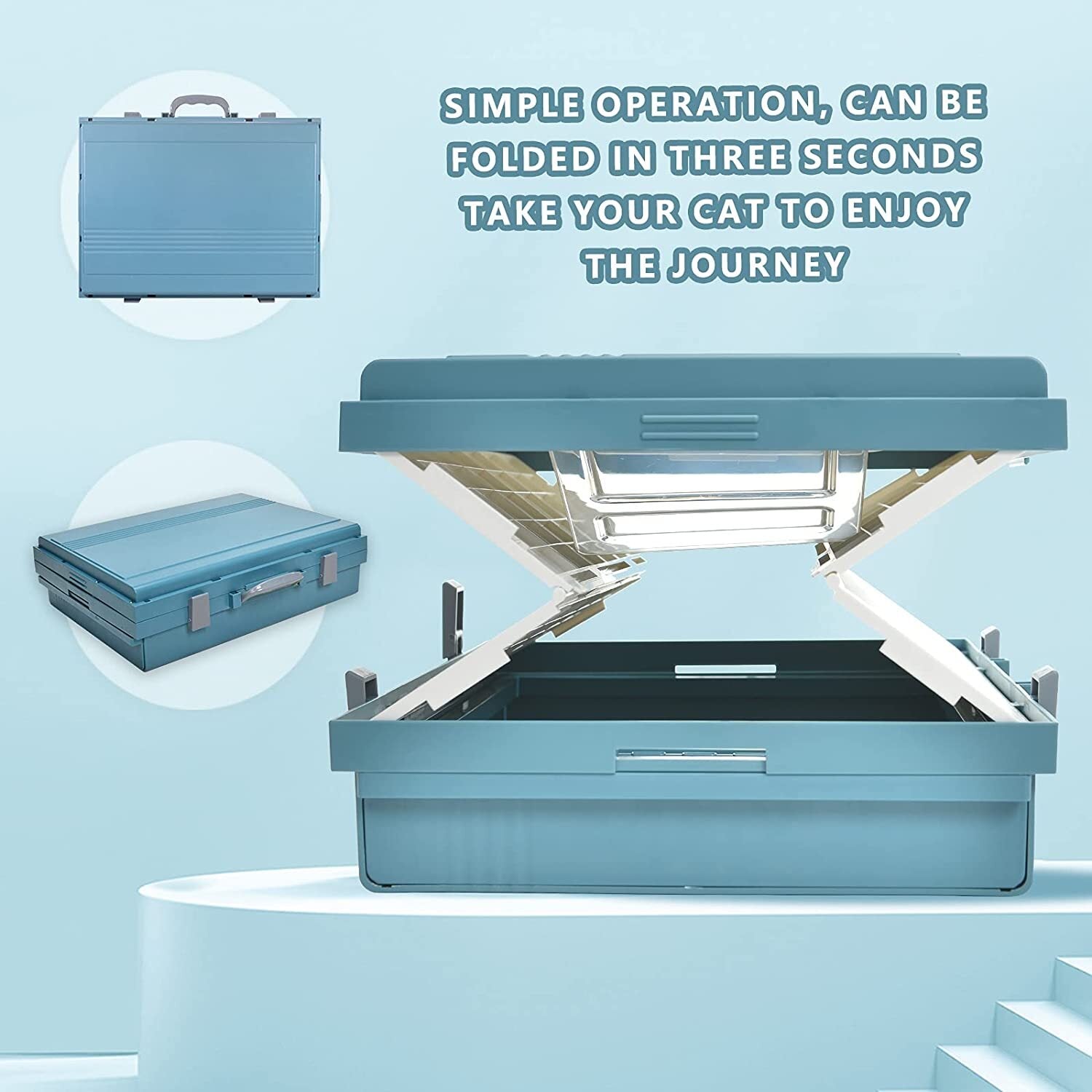XL Portable Cat Toilet Litter Box Tray Foldable House | with Handle and Scoop, Blue