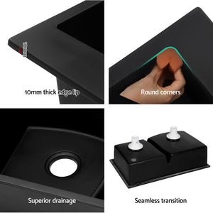 For a high-quality, high-style kitchen sink, look no further than the Cefito Stone Sink. Crafted with an 80% granite stone composite, this sink offers exceptional durability and strength. The 10mm thick edge lip adds a touch of elegance, while the silky textured surface provides a smooth and luxurious feel whether you're washing dishes, cleaning vegetables and fruit, or otherwise tidying after a long day. Built to withstand the test of time, this granite kitchen sink is both anti-fade and anti-scratch, ensuring its long-lasting beauty. Its stain and dirt resistance make cleaning a breeze, while the large capacity double bowl provides ample space for all your kitchen needs. With the added benefits of being oil and moisture-resistant, this sink is perfect for any culinary adventure. Additionally, your package includes two stainless-steel waste strainers for added convenience. Whether you prefer a drop-in mount, flush mount, or under-mount installation, this versatile sink is suitable for all three options. Backed by a 5-year warranty, the Cefito Stone Sink is a reliable and stylish choice for your kitchen.