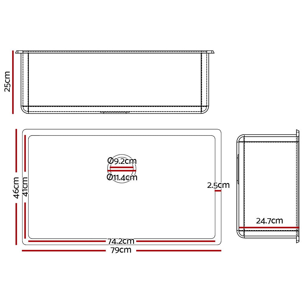 Granite Kitchen Sink | 790X450MM Under/Topmount Basin Bowl Laundry | Black