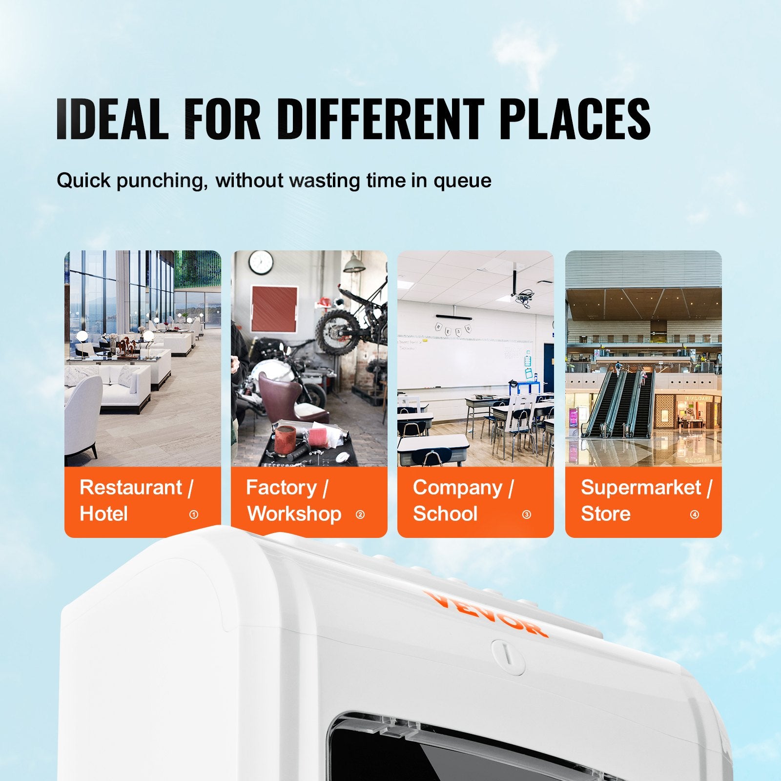 The compact and light time clocks for small business can be wall-mounted or placed on the desktop, suitable for offices, factories, restaurants, shopping malls, hospitals, supermarkets, etc. Easy to trace employees�� attendance for payroll statistics.