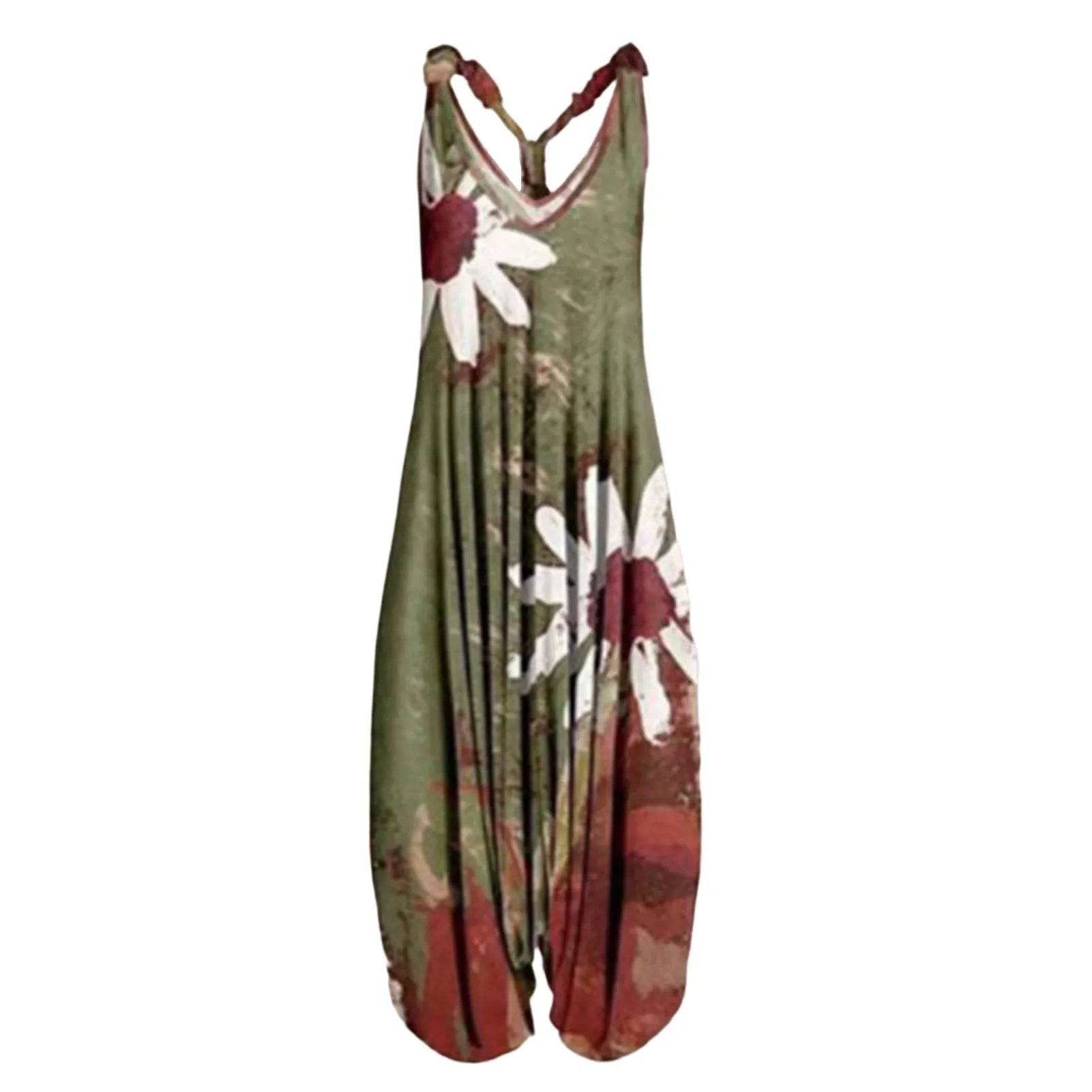 Available in sizes M to 4XL, this romper is designed to flatter all body types with its high-waist cut and relaxed fit. Whether you're enjoying a garden picnic, attending a summer festival, or simply embracing the boho lifestyle, this jumpsuit seamlessly combines comfort and a natural aesthetic.