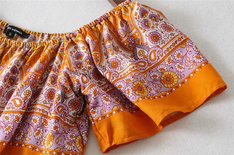 Our Women's Orange Floral Printed Sleeveless Boho Bodysuit Romper is a fun and stylish piece that is perfect for any beach or summer occasion. Made from a blend of rayon and cotton, this romper is soft, comfortable, and lightweight, making it easy to wear all day long. The fabric is knitted, giving it a stretchy and comfortable fit. The romper comes in a beautiful orange floral print, featuring a variety of bold and vibrant colors. The full length and sleeveless design make it a comfortable and stylish choice for any occasion. The lace-up detail adds a touch of bohemian charm, while the loose fit allows for a breezy and carefree feel. Whether you're hitting the beach or going out for a night on the town, this romper is sure to make a statement and add some fun and flair to your wardrobe. Available in sizes S-L, this romper is the perfect choice for any woman looking to add some style and personality to her summer wardrobe.
