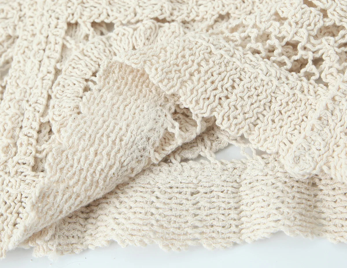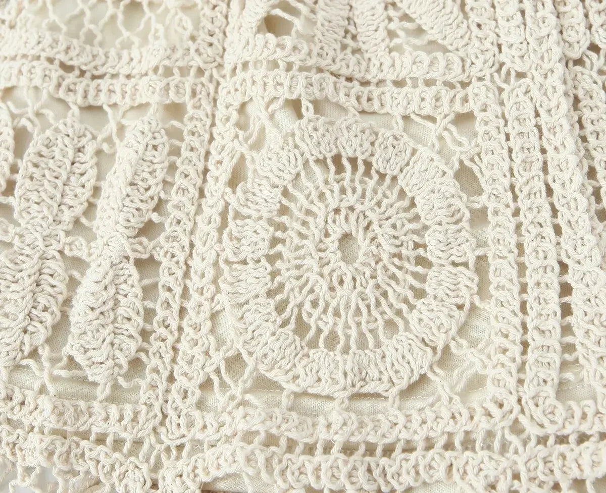 Crafted from natural fibres with subtle stretch, the set blends comfort with effortless coastal style. The hook-flower hollow and spliced detailing give it a handcrafted, artisan touch – perfect for vacations, lounging, or casual boho-chic vibes.