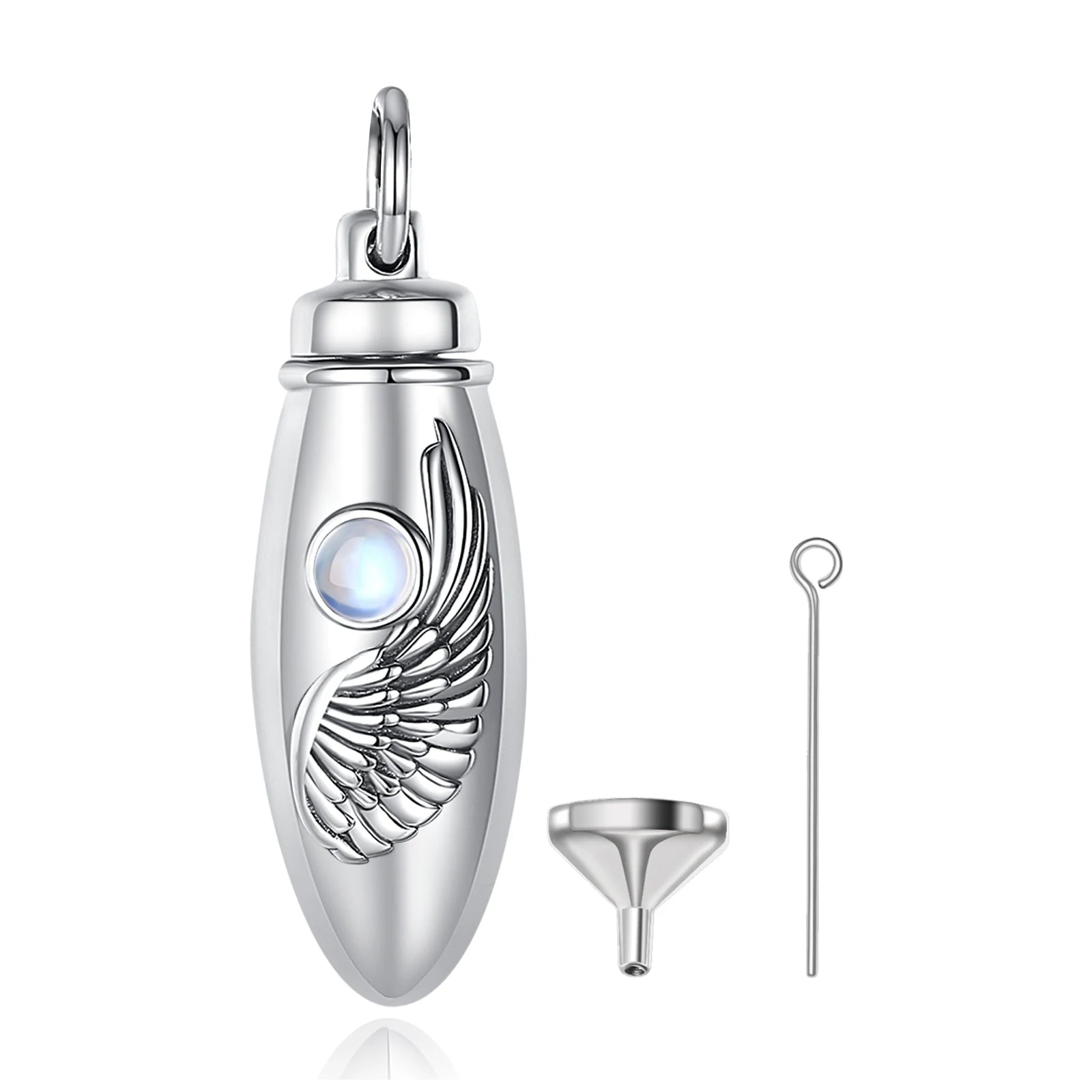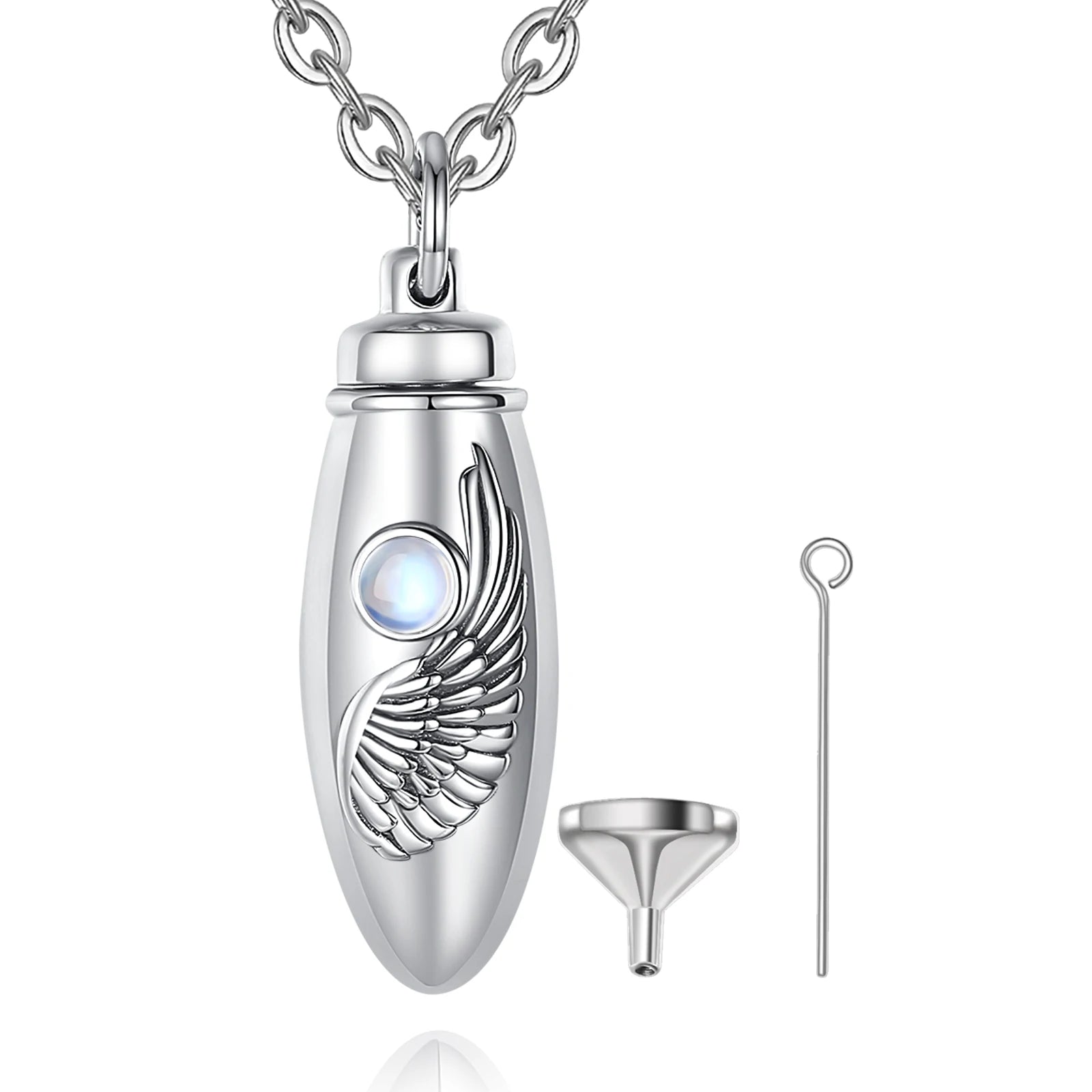 Keep your memories close to your heart and honor your loved ones with our Moon Stone Angel Wing Cremation Necklace, a timeless symbol of love and remembrance.