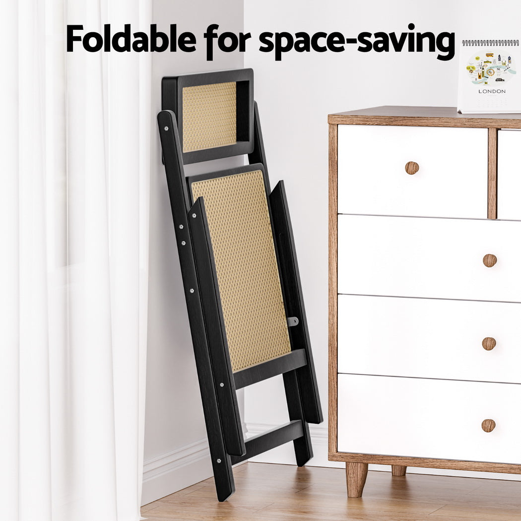 This Artiss dining chair combines a stylish rattan-style design with foldable, space-saving functionality. Featuring a comfortable backrest and seat, a sturdy poplar wood frame, safe rounded edges, and easy assembly for convenience