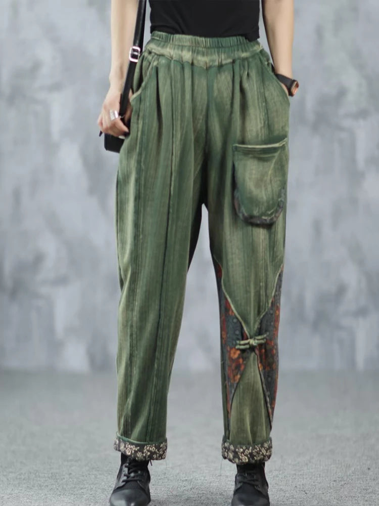 Embrace comfort and bohemian style with these casual loose-fit harem trousers, perfect for everyday wear. Crafted from a breathable cotton and microfiber blend, these full-length trousers feature an elastic waistband for a flexible fit, along with convenient side pockets. With a solid color design, they’re available in four earthy tones: black, green, maroon, and brown, to match your unique style.