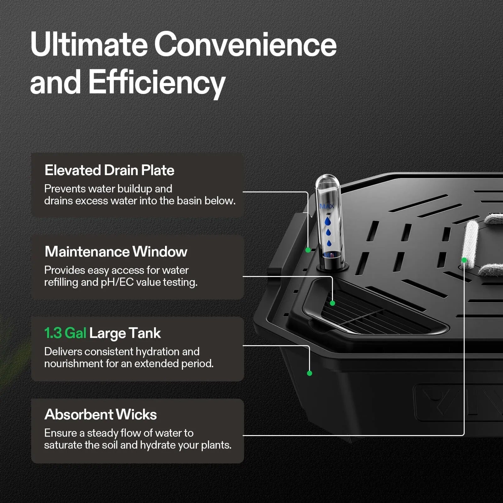 Stores 1.3 gallons (6L) of water to keep your plants nourished for up to 7 days, making it ideal for vacations or automated grow setups.