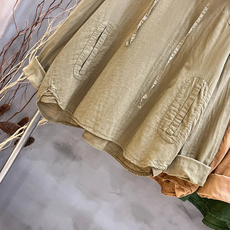 Effortlessly blend comfort and style with this versatile hooded cotton top, perfect for casual summer wear. Available in a range of neutral and earthy tones, this top is designed for laid-back days and vintage-inspired looks.