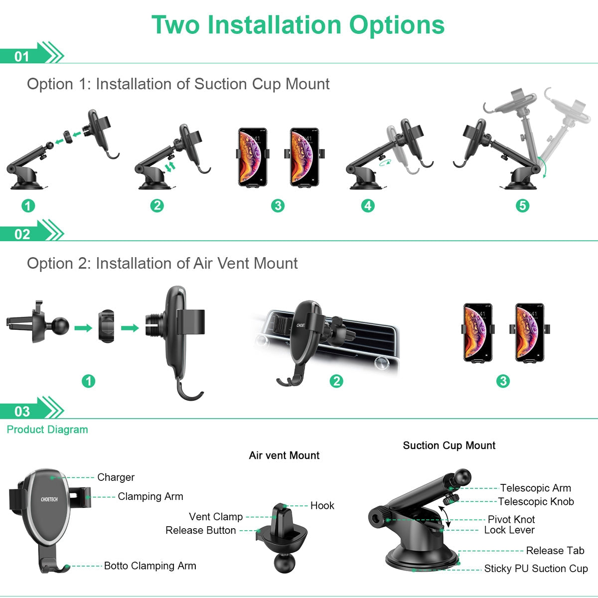 1 x CHOETECH T536-S Fast Wireless Charging Car Mount Phone Holder