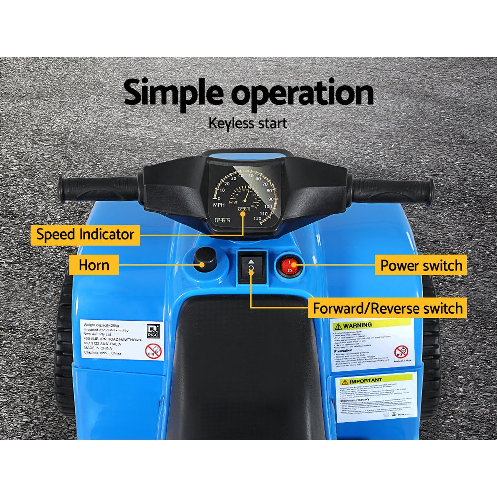 Kids Ride On ATV Quad Motorbike Car - 4 Wheeler Electric Toys | Battery Blue | Rigo