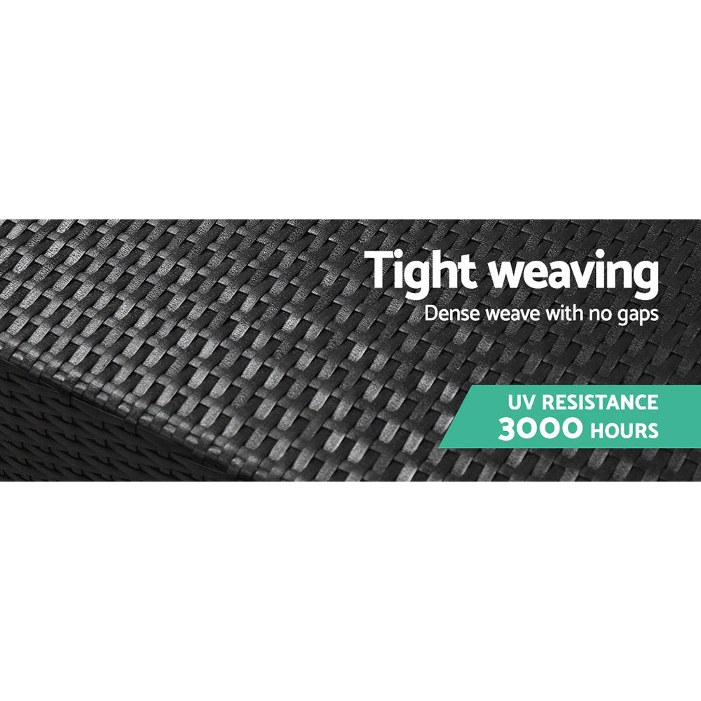 Enjoy the leisure outdoors with our Gardeon Outdoor Sofa. Made from tight-weaved rattan and a sturdy aluminium frame, the sofa is strong and durable. The PE wicker is highly UV-resistant and perfect for use outdoors or indoors. For comfort, the seat cushion comprises 10cm thick high-density foam and covered with a waterproof and removable polyester cover. The covers are also machine washable for easy maintenance. The seat can take up to 150kg for longlasting robust use. Not least, the sofa also comes with feet stabilizers for stability and easy shifting when needed.