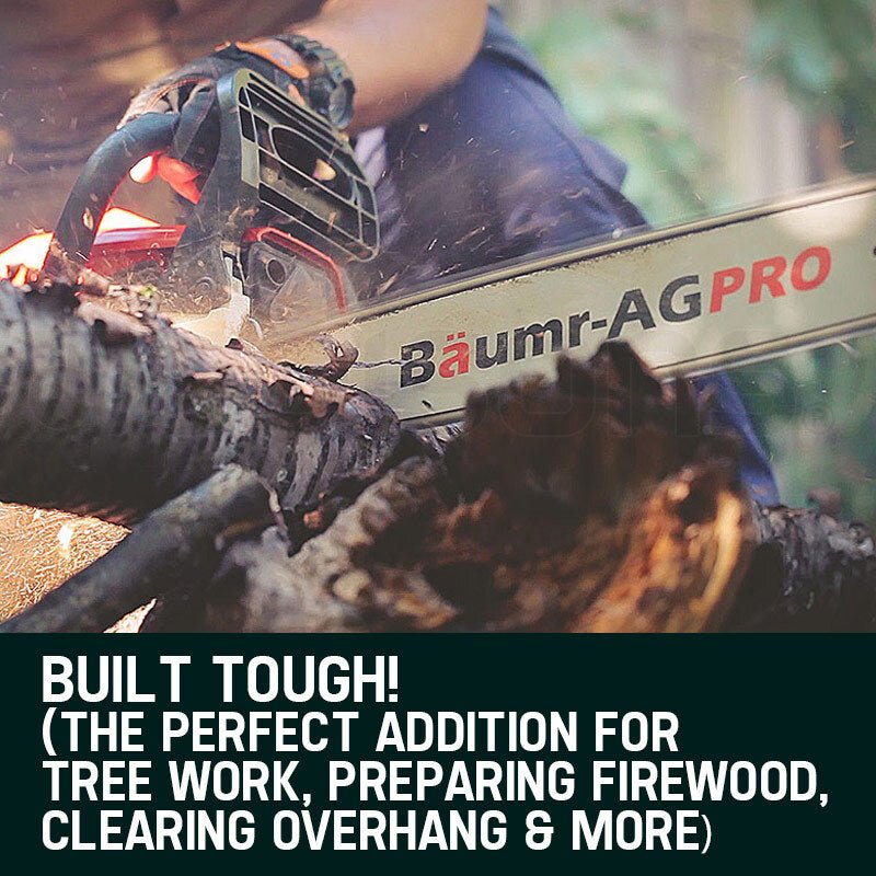 The Baumr-AG 22' Chainsaw Chain has a 0.058' gauge and 86 drive links. Its patented Tru-Sharp technology offers prolonged sharpness, and its anti-jam roll links and low resistance bevel tie-strapact in unison to minimise kickback.