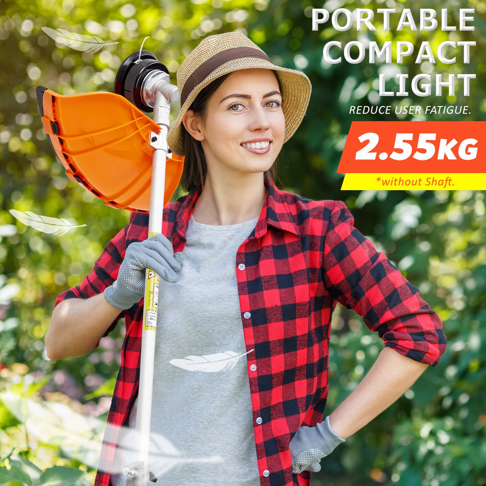 This DYNAMIC POWER Brush Cutter features a super light 2.55kg 26cc engine; and with Dynamic Power exclusive Easy Starting system, you're only one easy recoil start away from quality garden maintenance. Utilising premium Commercial Alloy, features a commercial grade quick connect couplings equipped with dual ball-bearing floating centres. espite Correctly Sized 182cm Long, genuine commercial fastening ensure superior stability - essential for safely handling.