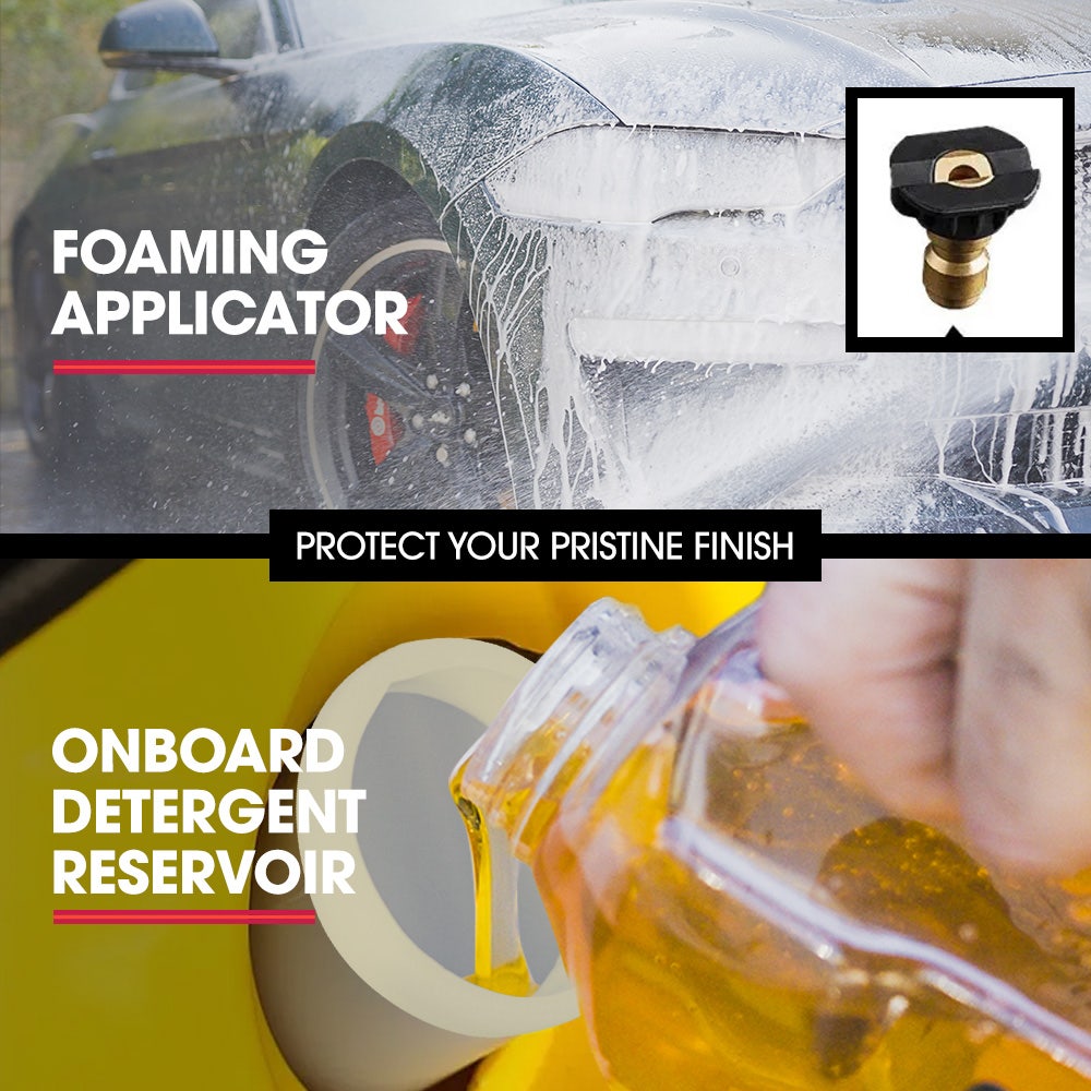 This feature-packed model includes a BONUS turbo wand, plus two BONUS premium scrub and rotary washer driven brushes ensuring you're armed with the right arsenal. The built in detergent injection system and assortment of 5 Pro Tip Nozzles and Commercial Turbo Head ensure that everything you spray and/or scrub comes up looking new!