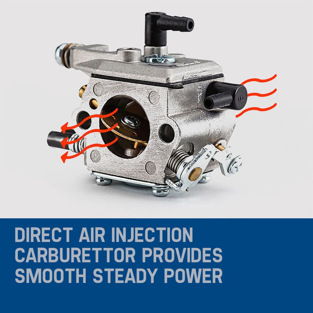 TheMTM 58SX Mark II Chainsaw is the ultimate wood cutting companion. Whether you\'re pruning hedges, cutting firewood or taking down whole trees. This fast revving,perfectly balanced unit packs serious punch with itspatented air injection carburettor andintake system delivering more grunt.