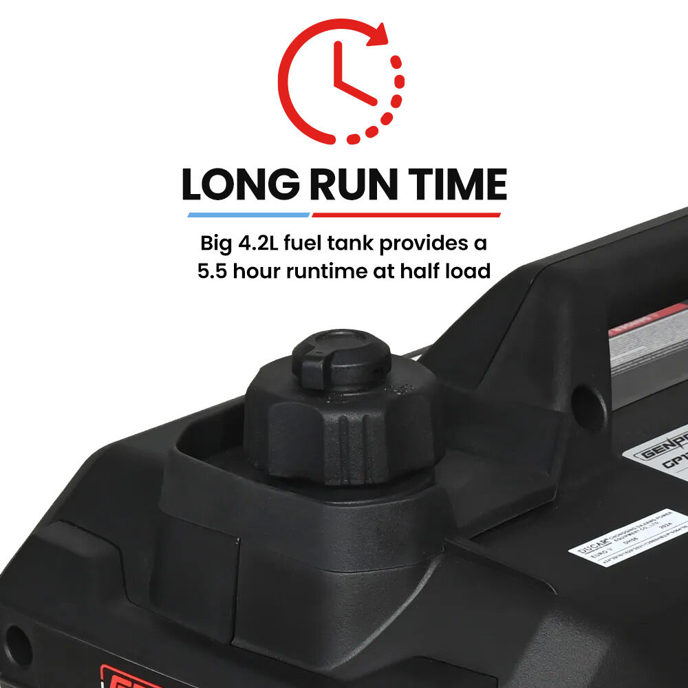 Quiet, efficient and ready for anything, the Genpower GP2300i inverter generator delivers reliable power wherever you need it. Whether you're powering tools on site, running appliances during an outage, or setting up off-grid, the GP2300i is your dependable power source.