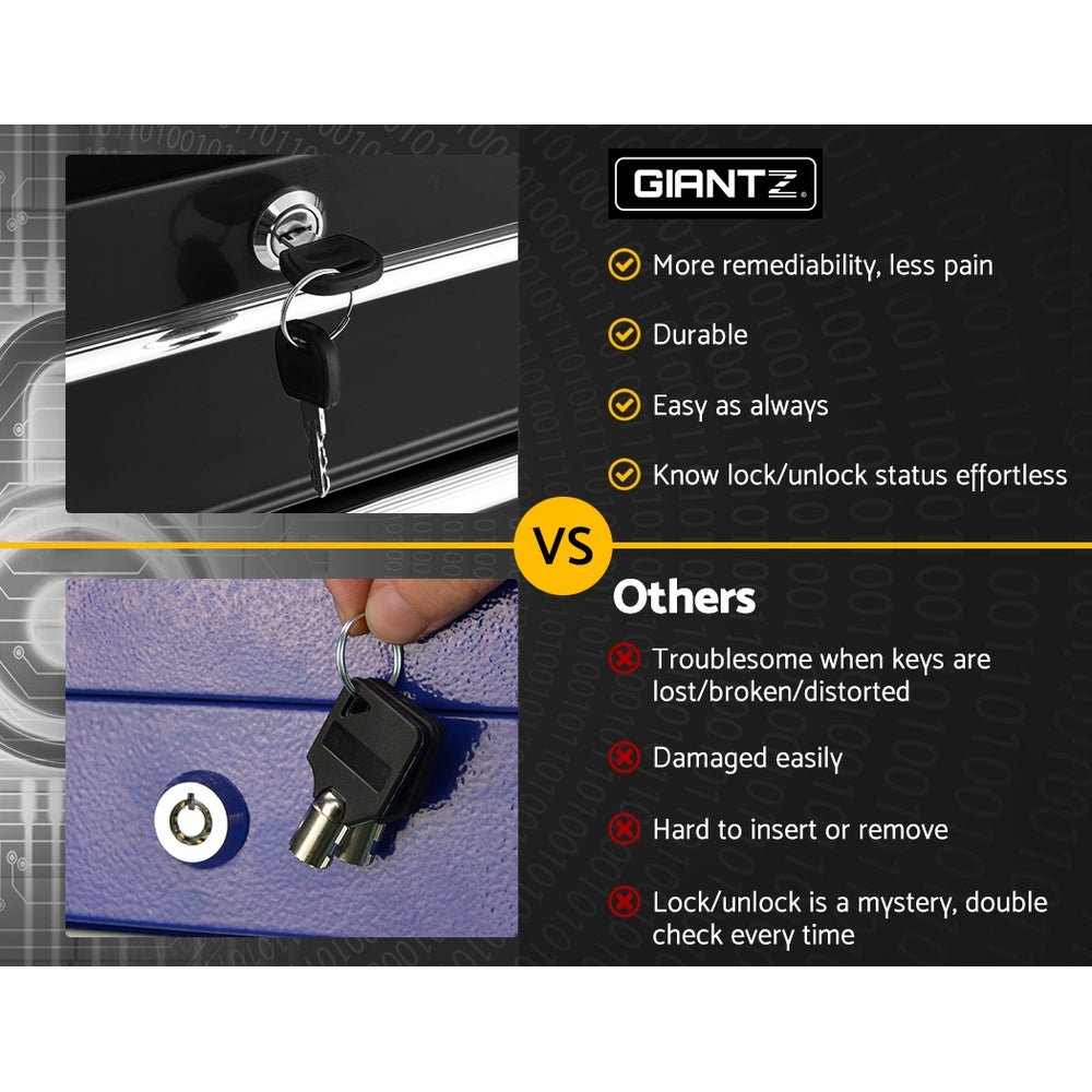 The item comes with a side handle and castors for mobility. Keep all the tools you need in reachable range. All the drawers are fully lockable which is more reliable to keep your tools in safety!
