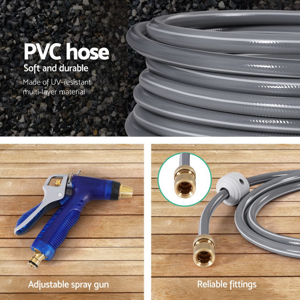With a 180° swivel wall mount, PVC hose, and a built-in handle for portability, this reel is both practical and versatile. The adjustable multimode spray gun and durable fittings make watering tasks effortless, whether you're tending to plants or cleaning surfaces. Compact and user-friendly, it's a must-have for maintaining an organised and efficient outdoor space.