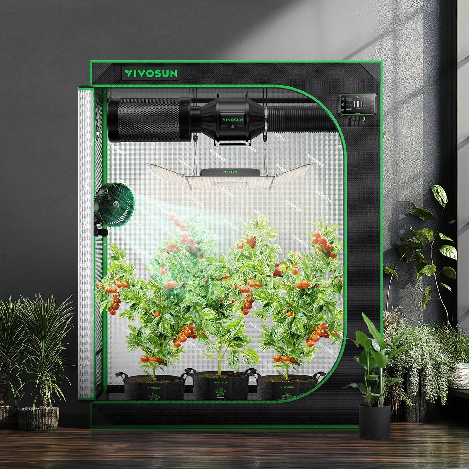 The combination of durable 600D Oxford canvas, a 100% reflective mylar lining, and a secure fiberglass frame makes it the ideal balance of size, strength, and efficiency for both beginner and experienced growers.