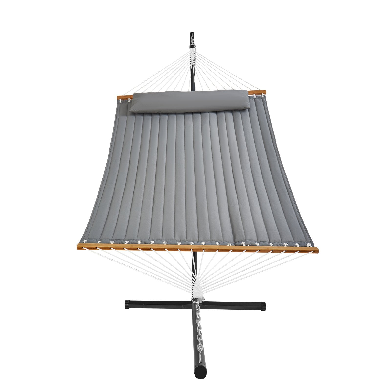 Our double quilted hammock with spreader bars offers a variety of colors and styles, making it perfect for your backyard, garden, patio, poolside, and more. Effortlessly set up and pack away, use it with trees or a hammock stand, and turn your place into a delightful retreat.