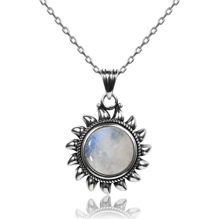 Introducing our enchanting Tibetan Silver Necklace, a celestial masterpiece that seamlessly blends timeless allure with bohemian chic. Crafted with meticulous care, this necklace features a radiant Sun Pendant, symbolizing vitality and positivity, intricately crafted in Tibetan silver. Complementing its celestial charm is a mesmerizing Moonstone Gem, renowned for its ethereal glow and mystical properties, reminiscent of the serene moonlit nights. Perfect for the free-spirited souls who embrace the bohemian or hippie style, this necklace effortlessly adds a touch of enchantment to any ensemble. Embrace your inner wanderer and illuminate your journey with our Tibetan Silver Necklace, a symbol of harmony, intuition, and spiritual awakening.