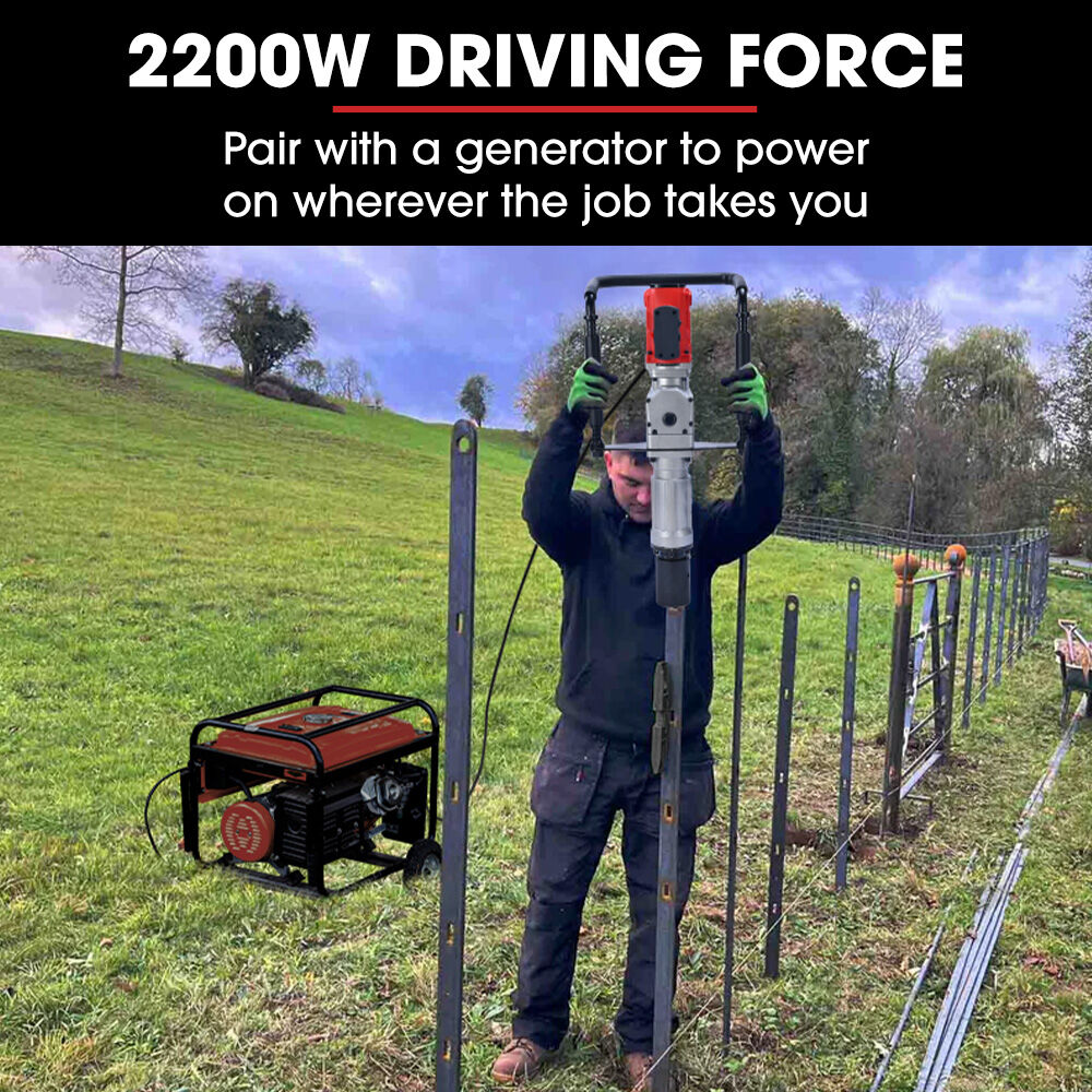 Heavy-duty power meets effortless precision with the Baumr-AG Electric Post Driver. Backed by a formidable 2200W brush motor, it delivers 85 joules of impact energy at 2100 blows per minutemore than enough grunt for serious post driving. Tackle everything from fencing to landscaping with sleeves to suit 55mm and 70mm posts. With a 20mm hammer stroke and forged steel impact pin, it hits hard and true, every time.