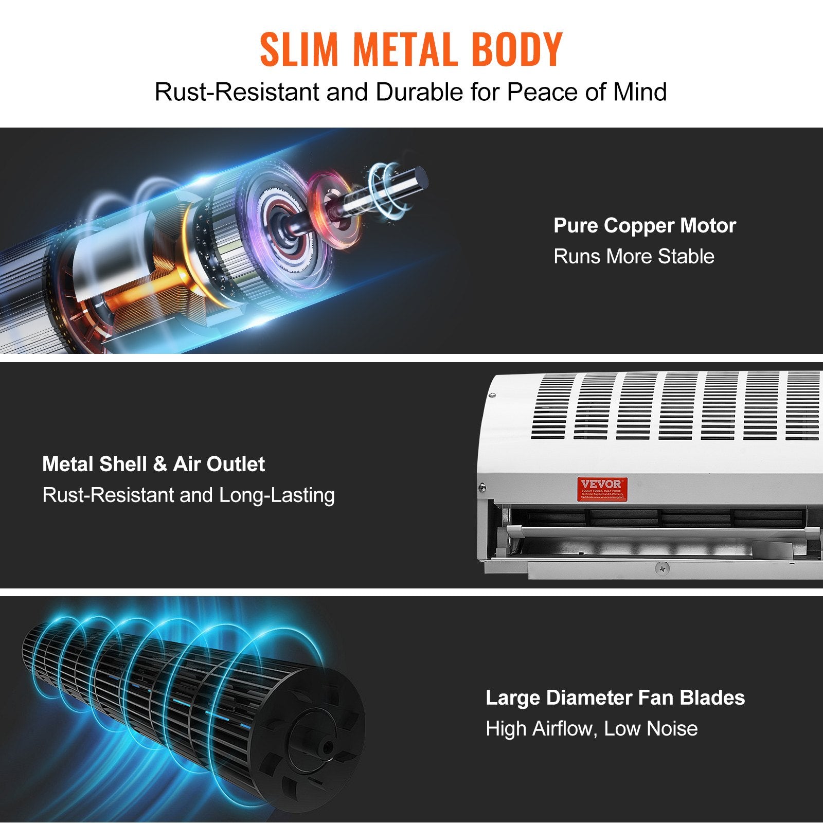 Commercial Indoor Air Curtain 0.9m | 2 Speeds 2038m³/h | UL Certified Over Door Fan with Limit Switch | Unheated Design