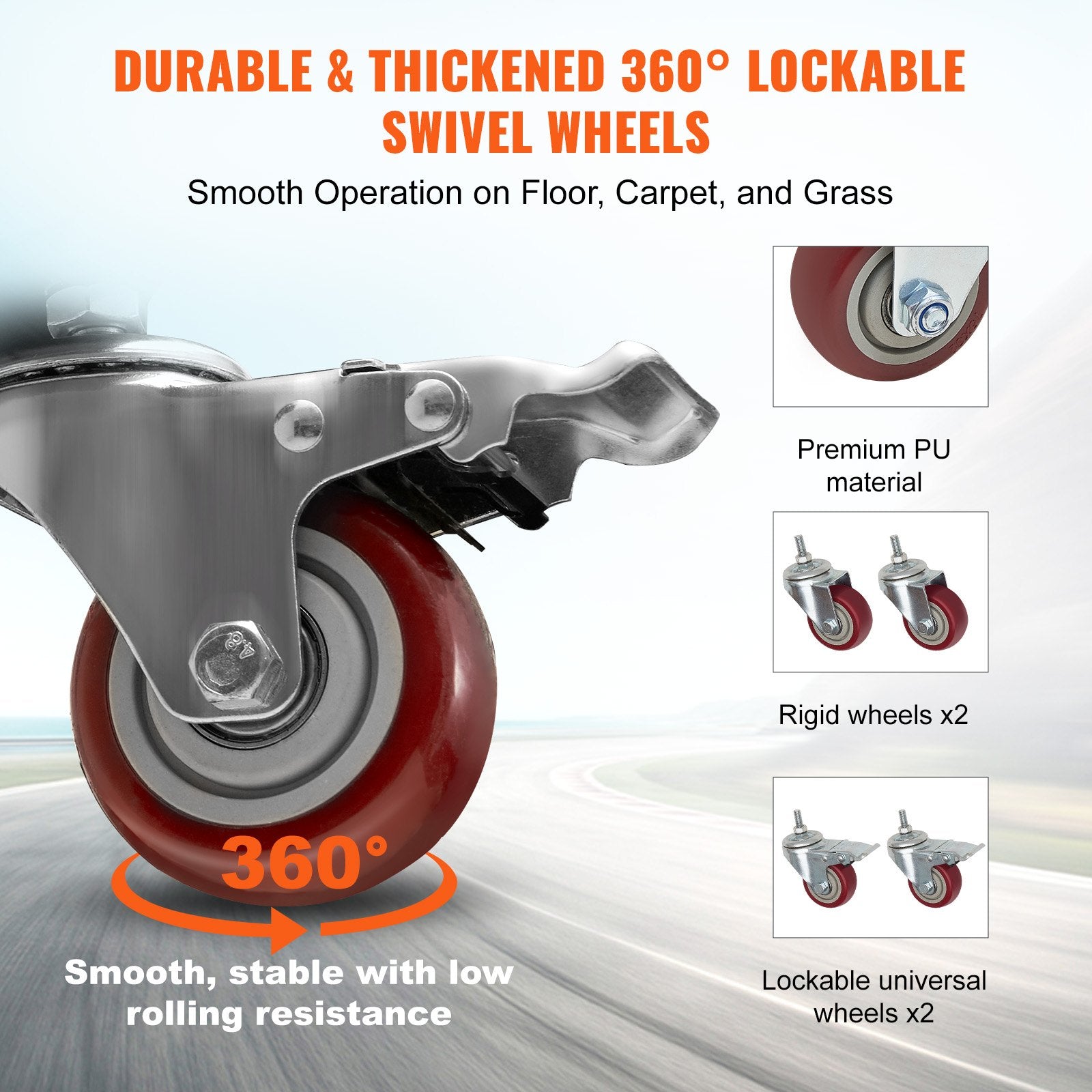 This folding chair dolly cart features upgraded full-welding technique for wheels and connectors, as well as enhanced load-bearing rigidity of the square tubes; every new enhancement is tailored to withstand the strict usage demands of users.