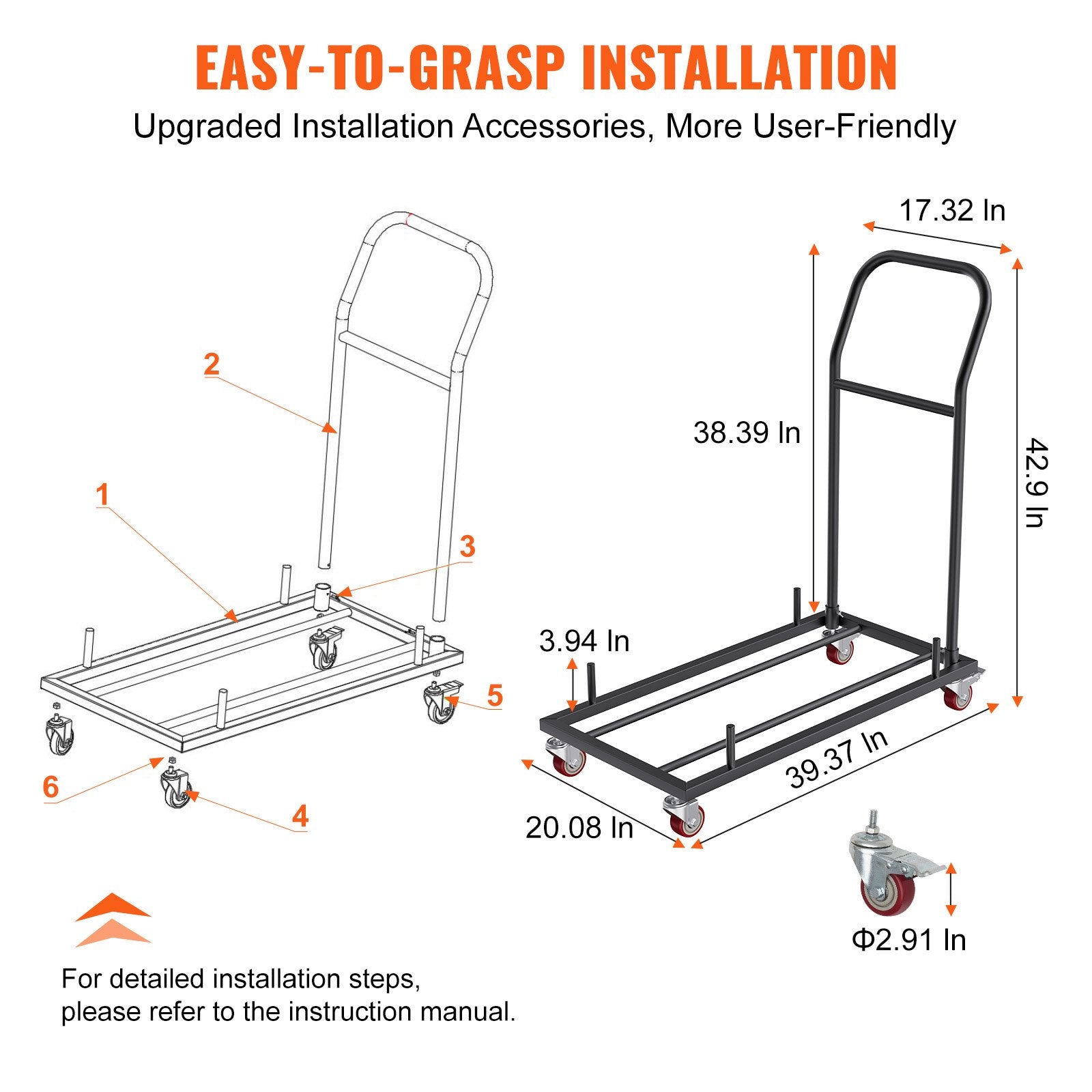 Storage and transport dolly comes with a comprehensive installation manual. As long as you can turn a screw, the upgraded assembly components will make the installation process feel intuitive and effortless.