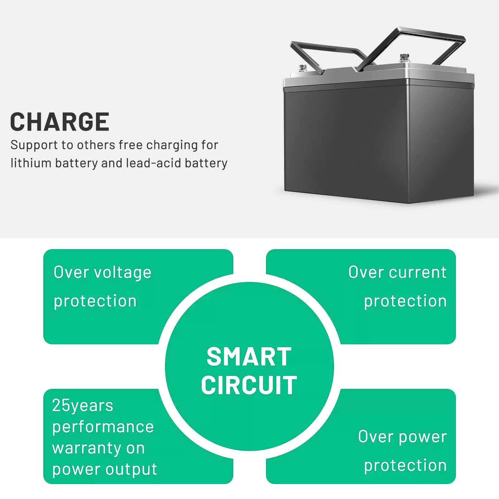Maximum Power: 160W Max System Voltage: 1000V DC Temperature Range: -40 C - 85 C Solar Cell: Grade-A Monocrystalline FEATURES A-Grade Monocrystalline Solar Cells. Most coating for maximum strength and durability. IP65 waterproof rating. PWM regulator. Compatible with Lithium LiFePO4, AGM. Includes battery clips and6mcable with Anderson style plugs. Foldaway legs which provide angled optimum solar power harvesting. Folds up into a compact carry bag. Matte PET surface, easy adhesion, stable structure and stamping resistance. High-density material with high light transmission, strong and aging resistance. What's In Box 1x Folding solar panel blanket with legs and pocket 1x PWM Regulator with USB ports 1x 6m Total cable with anderson plug 1x 2m Cable with alligator clips adaptor 2x 20cm Anderson cable for regulator Panel Size: 1910*405*17mm / 480*405*38mm