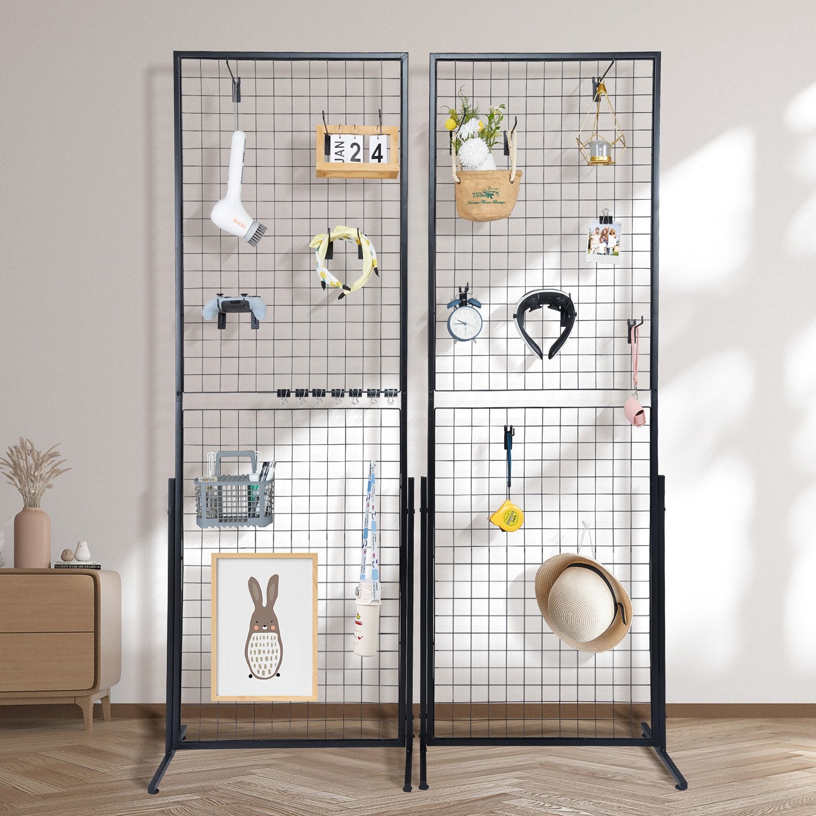 Grid Wall Panels 2 Pack | 2'x5.6' Double-Sided with T-Base Stand