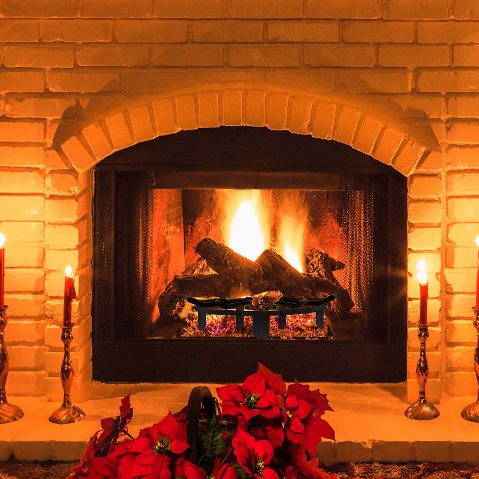 The fireplace rack includes 12 steel bars with appropriately sized gaps to accommodate various sizes of firewood, providing a longer-lasting fire. The curved design ensures that the firewood remains in a safe place, preventing the logs from rolling or moving during burning.