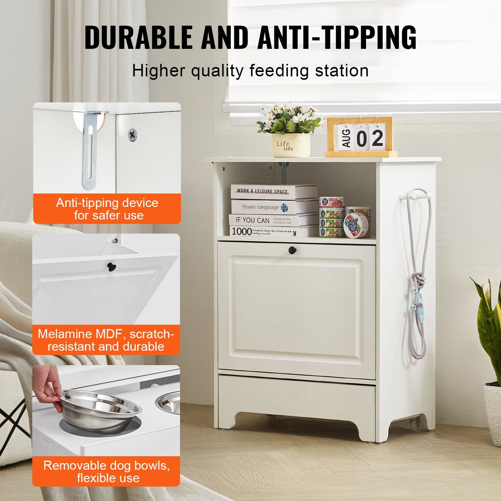 Designed with pre-drilled holes, our pet feeding station is simple to assemble using minimal tools and the provided instructions. The melamine MDF is smooth, waterproof, and easy to clean.