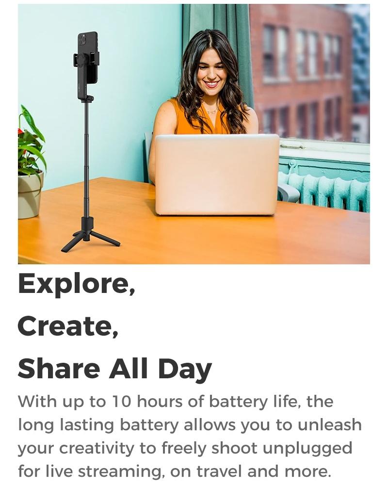 • Functions: Folding, Tripod, Telescopic Rod, Remote Controller, Stabilization of Shooting, Native Camera Control