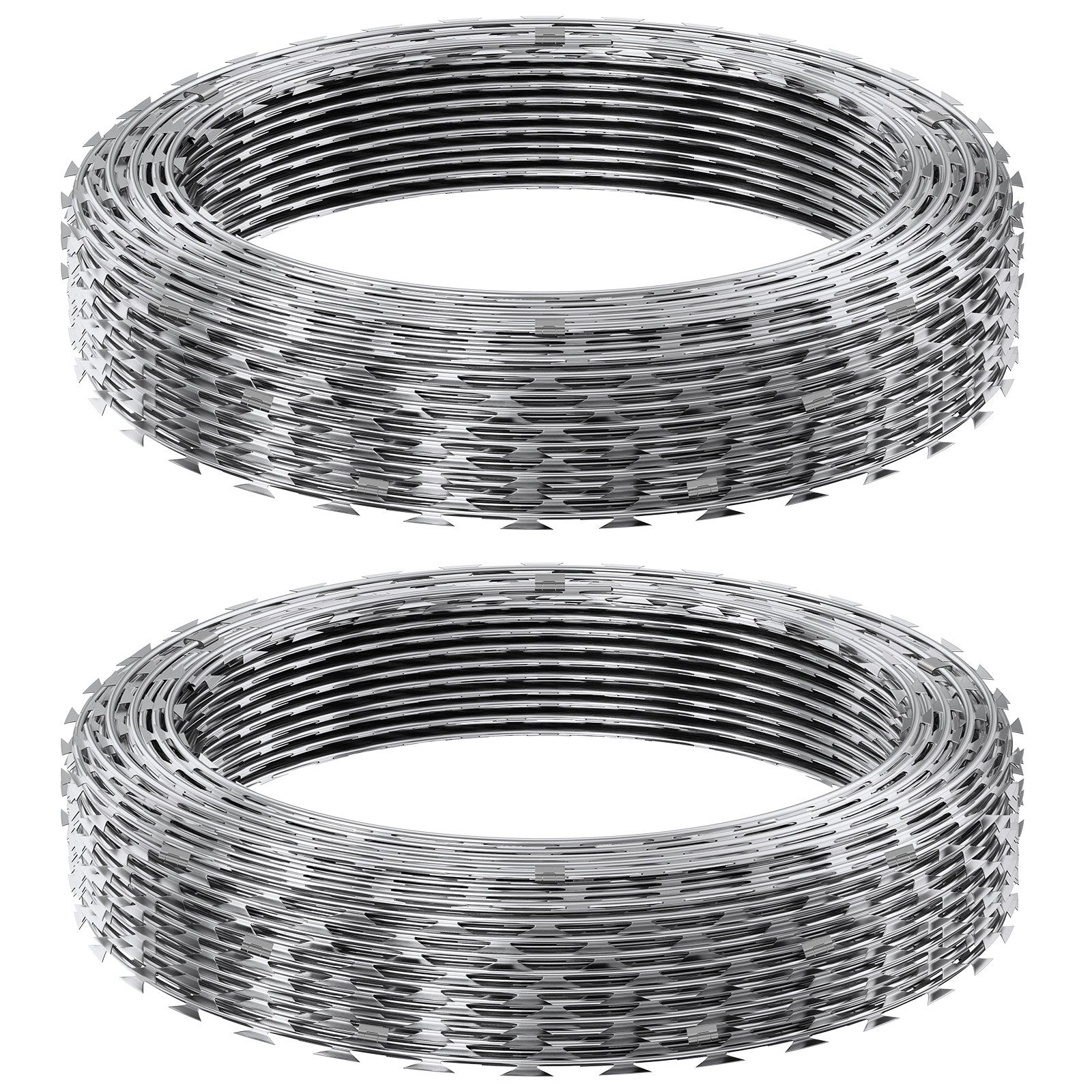 Upgraded with razor blades measuring 0.02" in thickness and 0.98" in width, our razor barbed wire provides superior protection. The longer and sharper blades with double-spiral design, increases security and preventing intrusions effectively.