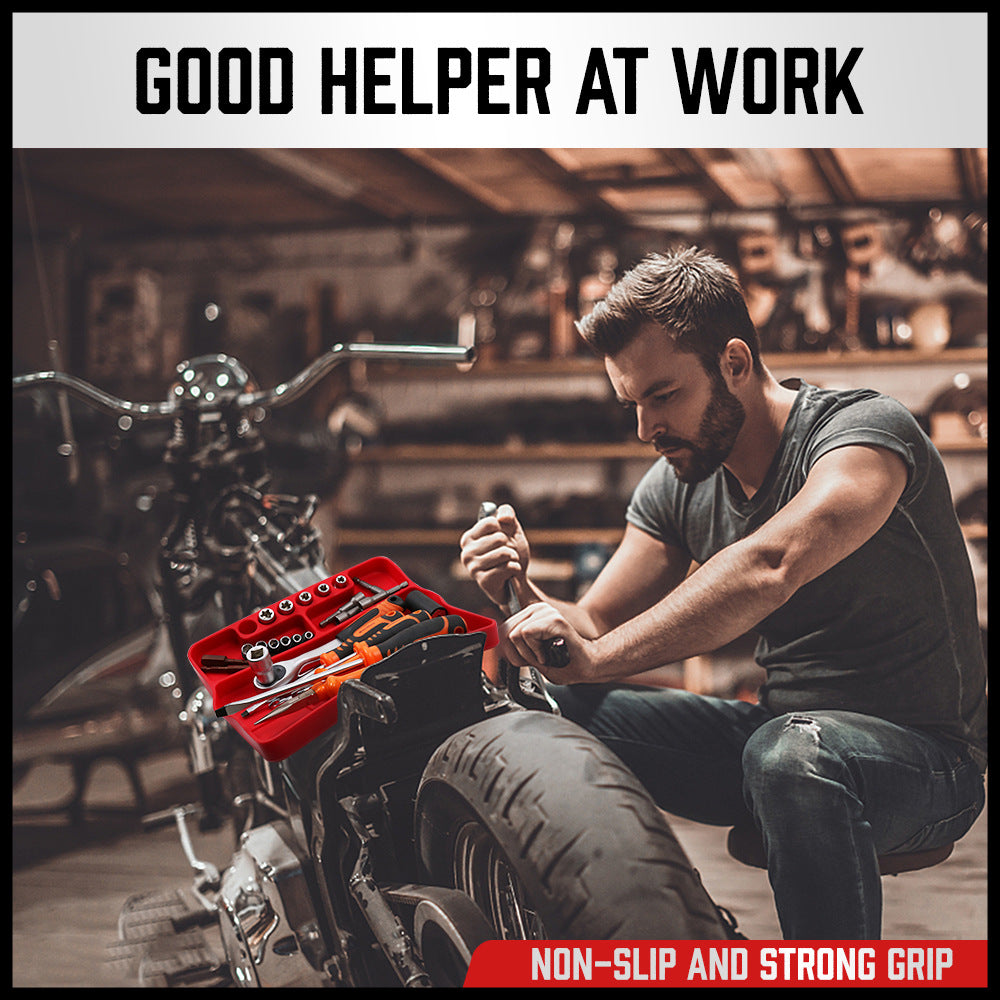 Keep your tools and small parts organized and accessible with this convenient Set of 2 Non-Slip Flexible Silicone Tool Trays. Made from 100% premium quality silicone, these trays provide a strong grip on surfaces and prevent damage to finished materials. The flexible design allows them to conform to various workspaces. One tray features multiple compartments for organizing hand tools like wrenches, pliers, screwdrivers, sockets, and bits, while the other includes dedicated compartments and a built-in magnetic parts tray, perfect for keeping screws, bolts, nuts, and other small metal fasteners securely in place. These organizer trays are portable, easy to carry, and serve as an excellent helper at work, whether you're in the garage, workshop, or on the job site. Their orderly and convenient design ensures your essential items are always within reach.